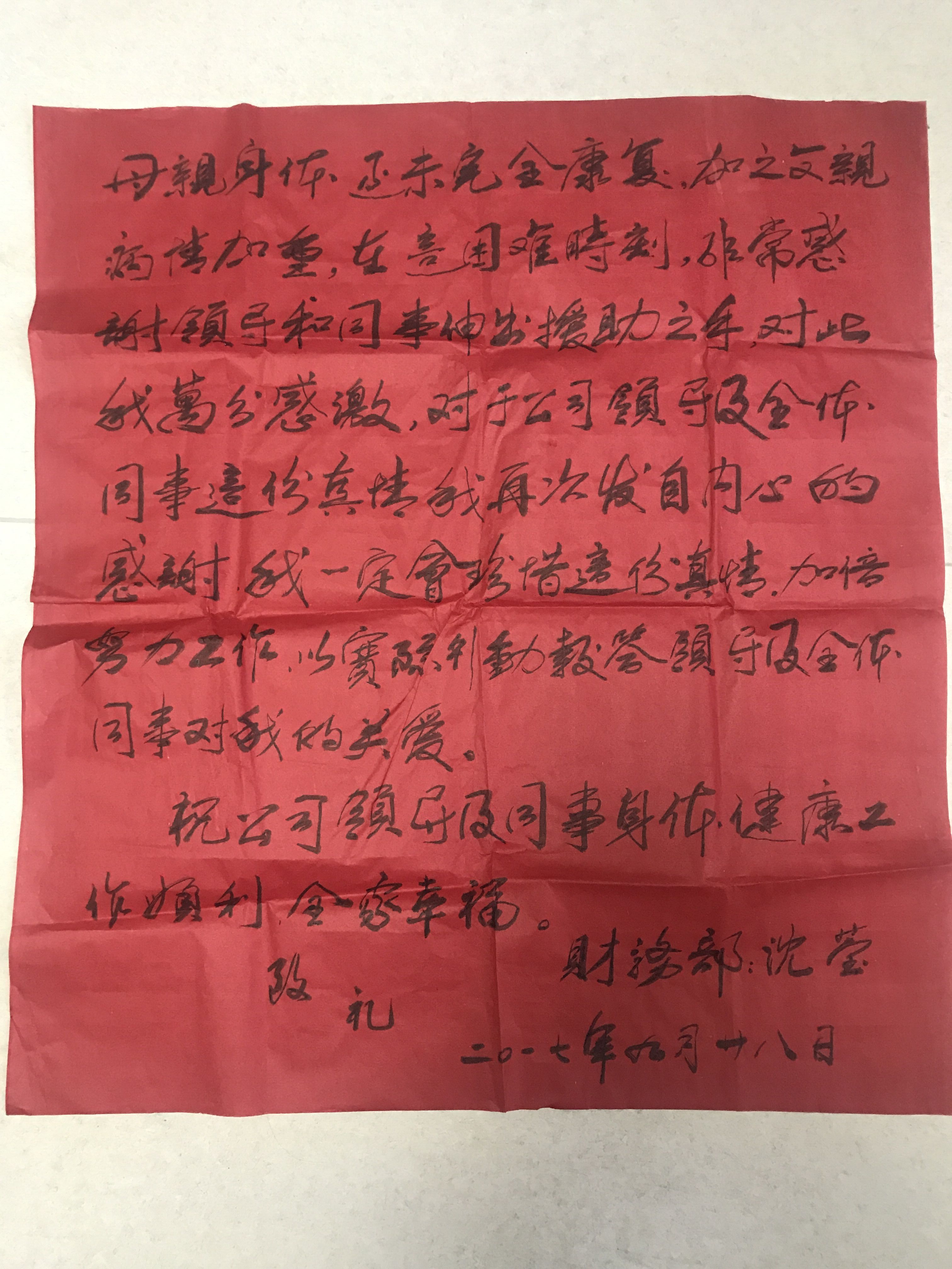 大愛無疆,真情永在,公司黨委、工會得知此事后,迅速發出愛心捐助倡議書,號召公司全體職工為沈瑩捐款,幫助她走出困境。倡議一經發出,立即得到了大家的積極響應,紛紛伸出援助之手,一個星期內,就收到愛心善款70000余元。